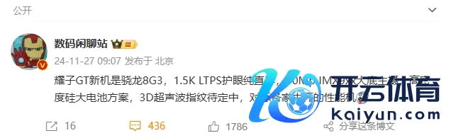 当天早些本事,他还提到荣耀 GT 新机将搭载第三代骁龙 8 惩处器,配备 1.5K LTPS 护眼纯直屏,后置 50Mp IMX9xx 大底主摄,接受高密度硅大电板决策,更多笃定可见IT之家此前报谈。