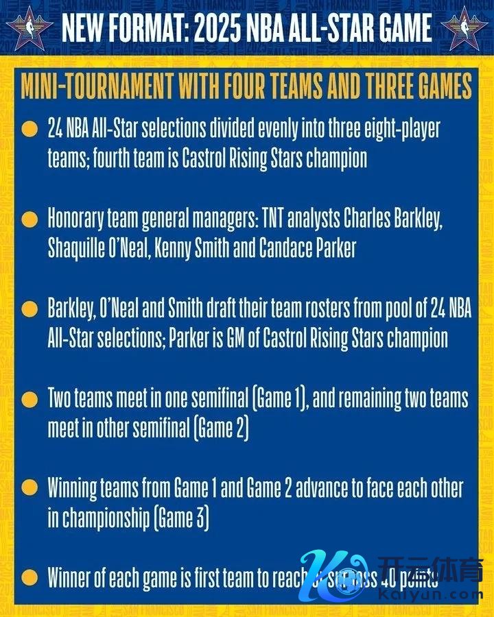 NBA官方和球职工会晓谕在好汉主场大通中心举行的2025年NBA全明星赛将摄取新的赛制: