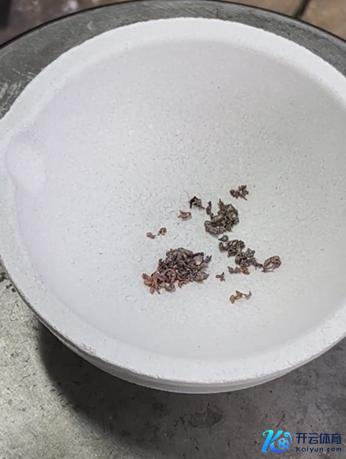 唐先生拍摄的测评视频中看到,将“淘金沙”倒到盘中后,内部有不少金色的小颗粒。将金色的小颗粒一个个挑出来后,用高温融金喷枪进行灼烧,却形成了灰玄色。